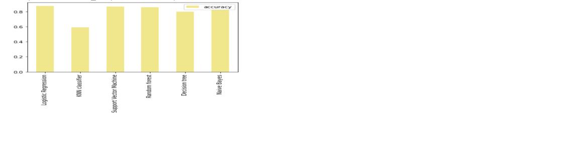 Theabovefig5.3.1isagraphicalrepresentationoftheresult obtained when all the mentioned machine learning algorithmsareappliedonthedataset.