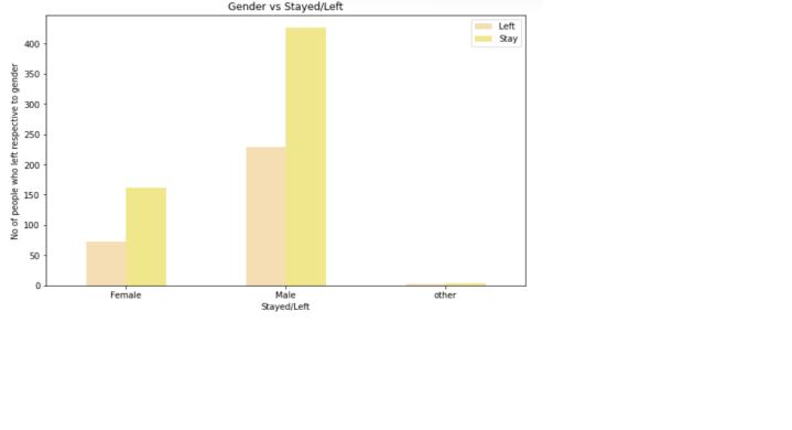 The second graph is a representation of the effect on attrition based on gender.The graph shows how male candidatesaremorelikelytostayintheorganisationthan femalecandidates.