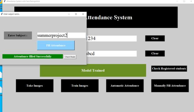 After taking automatic attendance the output will be as follows