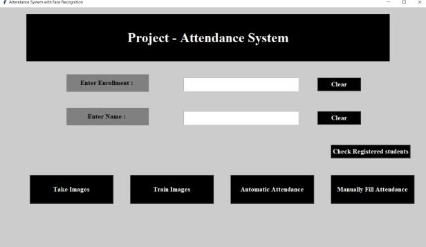InitiallyEverystudenthastoRegisterintheSystemusing theirname,enrollmentidandImagesofdifferentanglesTo Register One should click on take images module so it starting taking images of a student. About 70 images of studentsaretakentheoutputscreenwillbeasfollows