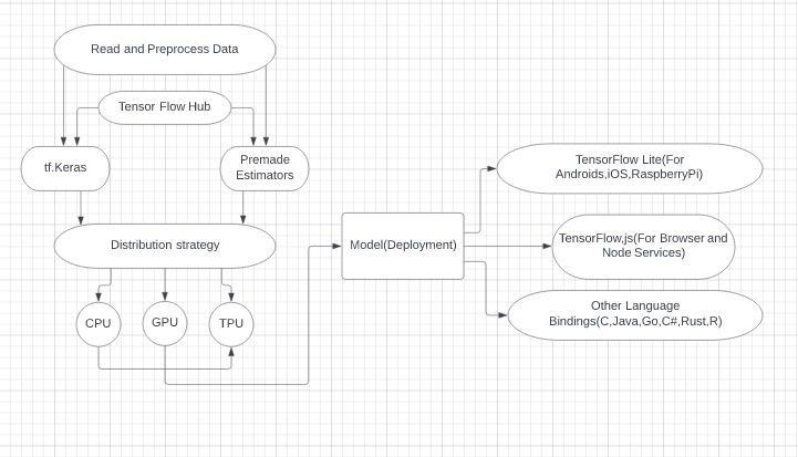 Thepreprocesseddatagatheredfromcomputerperipherals(i.e.camera,sensors,etc.)isshownintheabovediagramgoing throughtheTensorFlowalgorithm.Itdividestheworkloadamongstthecomputerprocessors.Oncealloftheprocesseshave beencompleted,eachprocessortransferstheprocesstothedevelopmentmodel,whichthenshowstheresultaccordingtothe variousservices.