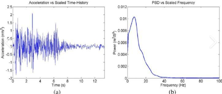 Fig.ThescaledElCentroearthquakeEW:(a)acceleration and(b)powerspectrumdensity.