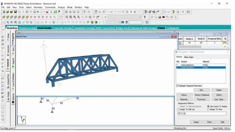 3. To analyze the above truss bridge when subjected to dead load, live load, earthquake load ,wind load Using Staad-prosoftware.