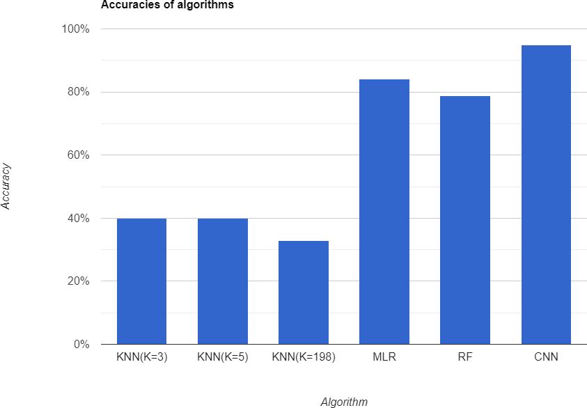 Thecalculatedaccuraciesforeachalgorithmareshownin Fig-4Thebargraphhelpstocomparetheperformancesof thealgorithms.