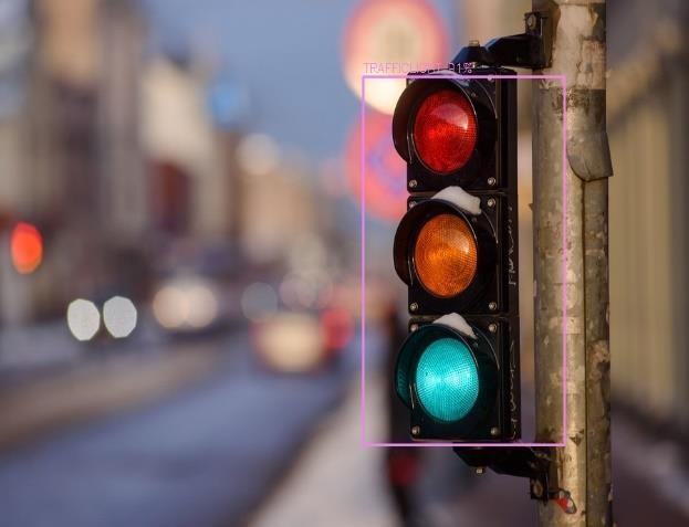 Theentireinputimageispartitionedintoasquare grid,andeachobjectisdetectedinthegridcellthat containsitscenter.TheBboundingboxesandthe correspondingconfidenceratingswillbepredicted foreachgridcell.Thisratingshowshowaccurate the box is and how certain the model is that the objectisinsidethebox.IOUofpredictedvaluesand thegroundtruthvaluesoftheboundingboxisthe Confidencescore.TillnowwehavetestedYolov4 on only 4 classes of images i.e., Crosswalk, stop, trafficsignals,speedlimit.Fig-3,Fig-5,Fig-6and Fig-7aresomeresultantimagesofaboveclasses.