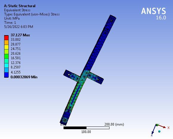 Theanalyticalstressis37.127MPatherebysuggestingthat thedesignoflink-1issafeunderagivensystemofforces.