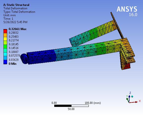 The maximum deformation is 0.32661 mm which is very negligiblehencethelink-2issafeundera givensystemof forces.