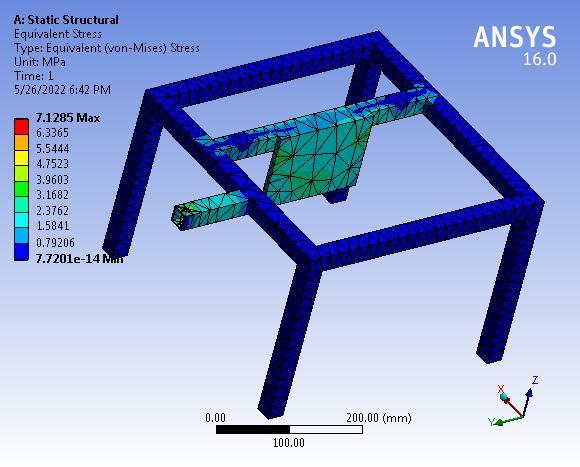 Theanalyticalstressis7.1785MPatherebysuggestingthat thedesignoftheBaseFrameissafeunderagivensystemof forces.