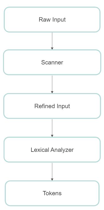 When the parser requires a new token, it invokes the lexical analyzer, which then returns the token and its lexeme. The lexical analyzer may be changed or replaced without having an impact on the remainder of the compiler sinceactual input process is concealed from the parser.