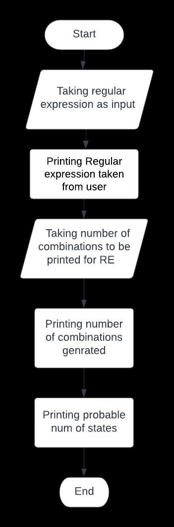 Making All above is the flow of a program used to generate strings of language for given regular expression and printing probablenumberofstatesDFAconsist.