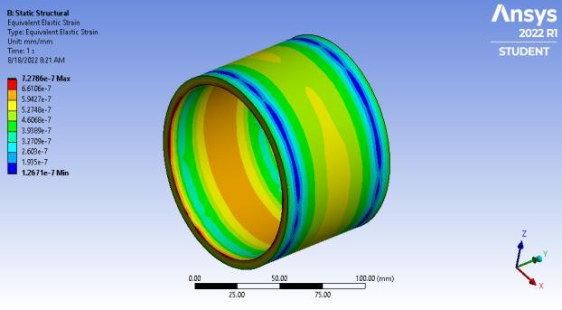 Figure10:Equivalentelasticstrainonbearingwith P100/6061Almaterial