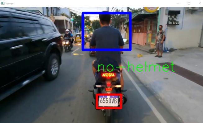 3. Detecting the Features: In this step, we use a video as input in the program will detect the featuresthatarehelmetsandbikes.Thistakesthe video frame by frame and first identifies which two-wheeler bikes are to be detected. After detecting the vehicle, it will compare the features ofthehelmetandnohelmetinthevideo.Oncethe features are compared, whether or not a twowheeler driver is wearing a helmet would be displayed on the monitor. Whenever it decides that the driver is not wearing a helmet, it will captureandretrievethelicensenumber.