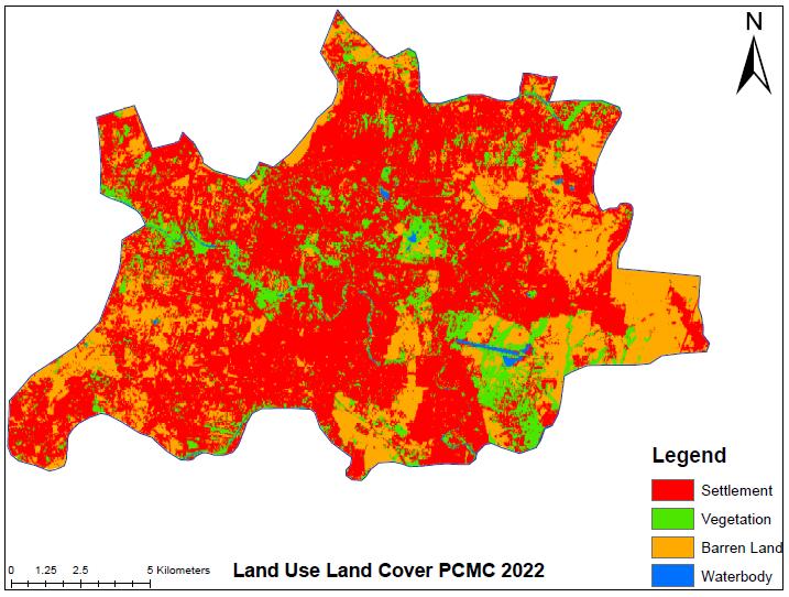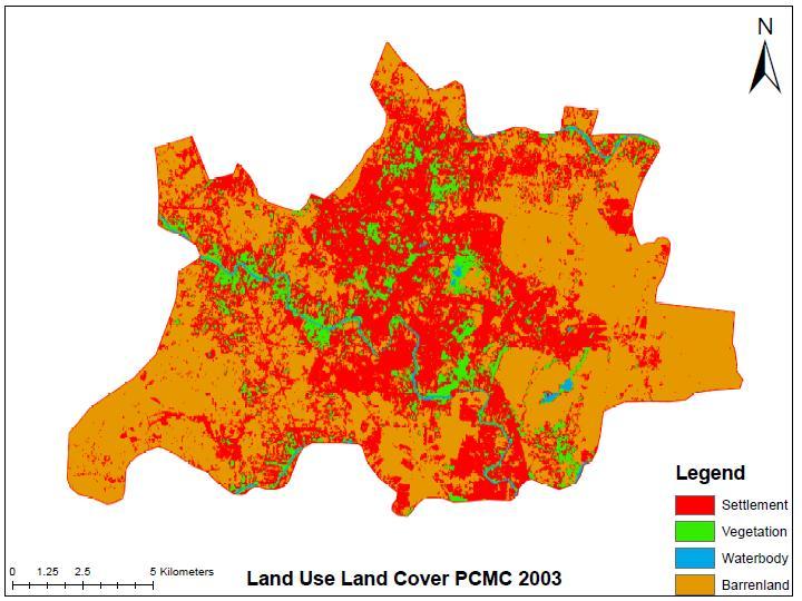 Landuse landcover map of city indicates the manner in which land in city is getting used. Landcover of last two decade is shown in map below for the years 2003, 2013, 2022.Landcovermapshowsdistributionincategorieslike built-up, Vegetation, Waterbody and barren land (Open land).Changeinlandcoverisshownisshownintableno.1