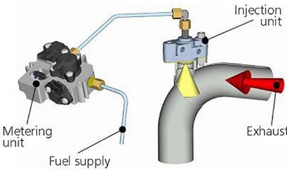 Intheabove-mentionedfirsttwooptionsforthe"passive" regeneration, the engine's mass flow, temperature, and oxygenlevelsshouldbemaintainedconsistentlytomeetthe regenerationconditionsoftheDPF.Consequently,iftheDPF inlettemperaturegetslowerorvaries,thenthesootwillnot react with incoming oxygen or NO2, which will impact the regeneration process. Often these type of not meeting regeneration conditions scenario are frequently observed during low temperature operating duty cycles such as garbagepick-upvehiclesandschoolbusesapplications.To mitigatetheaforementionedscenario,activeregenerationis thepreferredoptionforsootregeneration,whichwasearlier described as option three. However, for the latter two options,themeteredfuelisintroducedintheexhauststream, andthisfuelgetscombustedtoraisethetemperatureofthe DPFforsootregeneration.Thefuelcanbeintroducedintothe exhauststreameitherbylate-cycleorpost-cyclein-cylinder injectionorbydirectfuelinjectionintotheexhauststream.