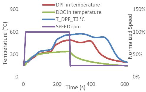 OveralltestresultsshowtheDPFoperatingconditionsare within the allowable DPF out temperature limit (650 oC) during this ALT cycle, which proves the DPF's thermal durability. This temperature limit is pre-defined based on DPFmaterialthermalstress.Typically,iftheanyabnormal spikeincatalysttemperature(>1000°C)orHCslip(>2500 ppm)abovethepre-definedlevelthenthefailureoftheDPF couldbeanticipated.