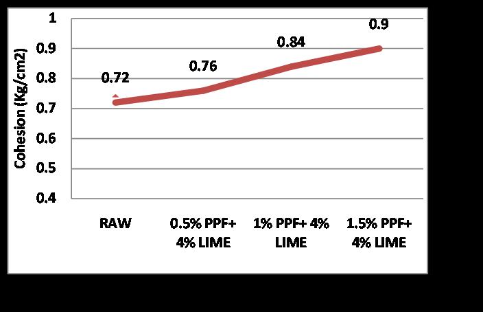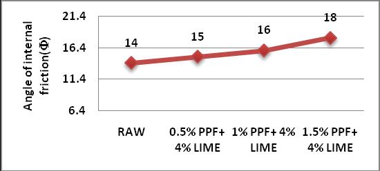 3) ThePercentageincreasedincohesionis25%asthe PPF and Lime increases and the percentage increasedinangleofinternalfrictionis28.57%.
