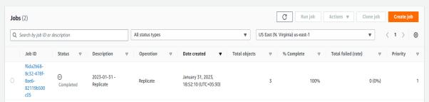f. Batch operation will be created. After batch operation is completed, a folder will be created for completion report in provided destinationbucket.