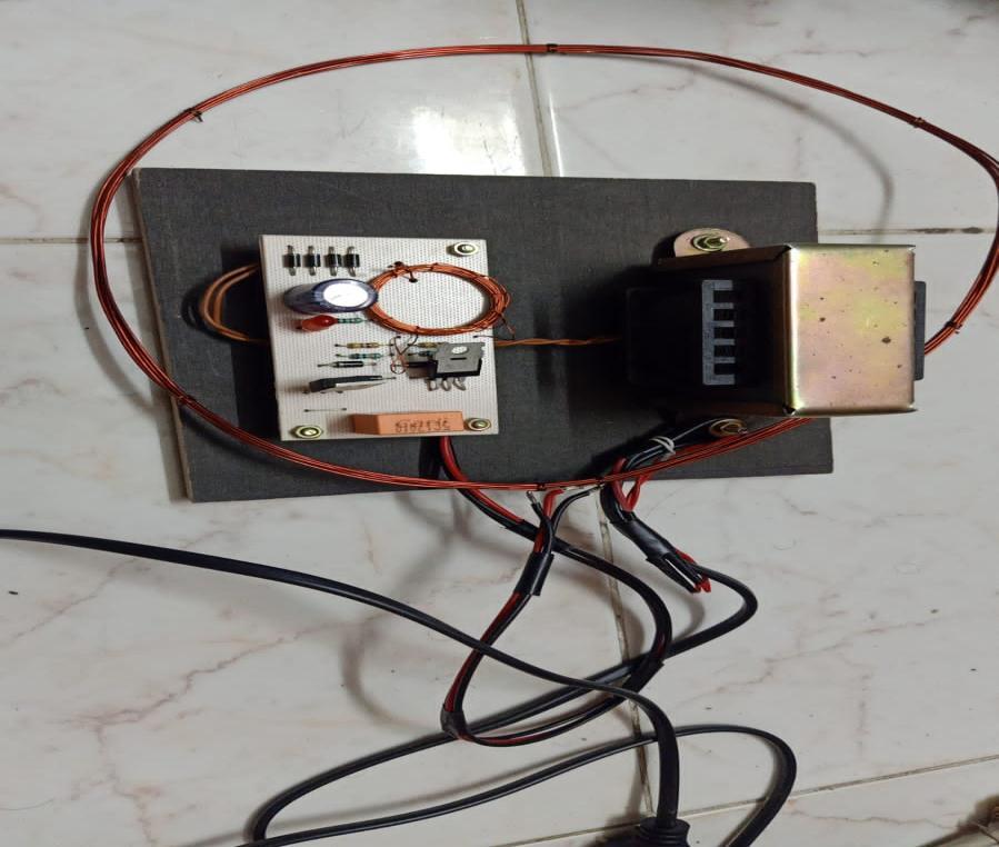 Sincethisisaprototypemodule,therangeshouldbelessthan5cmsincethetransmitterisbuiltwithlimitedpower.This mainsdrivenpowersourcemaybeusedtochargeapowerrechargeablebatteryinstalledwithinthemovingvehicle,and
