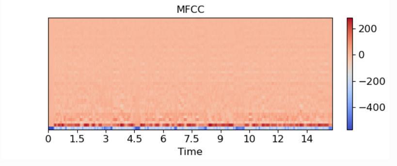 Thedatasetconsistedofaudioclipsrangingfrom10seconds to 30 seconds. We extracted Spectrogram, MFCC and Chromagram from once such audio clip which was 14 seconds long which can be seen in Fig-1, Fig-2 and Fig-3 respectively.