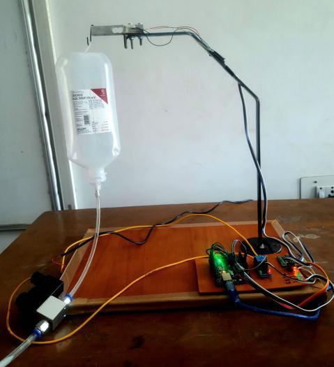 arestoredinanIVbag.Fluidsincludethingslikebloodfor blood transfusions, medicine mixes, and saline for hydration. The delivery of medications or fluids intravenouslyensuresthattheyaretransportedasquickly as possible through the bloodstream to all areas of the patient'sbody.IVtherapyutilizinganintravenousbagis frequentlyreferredtoasanIV"drip"todistinguishitfrom anIVbolus,alsoknownasanIV"push,"whichisasyringe injectiondirectlyintoaveinviaanIVcannula,orthrough aninjectionportonthebag.Nonetheless,IVdripsrequire routine inspection and replacement. Depending on the patient and their condition, the fluid flow must also be measured.Togivethefluidastresscausedbygravityforce electricalthatsurpassesthecirculatorypressure,abottle full with the appropriate fluid cure is hung at a height higherthanthepatient'sbody.Thecurrentdriptracking mechanismismanualandrequiresanurseoradoctorto monitorthepatient'sinfusionsetup.Theywanttoestimate howlongabottlewilltaketodrainhistorically,andregular roundsareneededtocontroltheflowrateandpreventany bubbleformationthatmakesthemanualdripmonitoring systemsusceptibletohumanerror.Thebottleistypically changed while being entirely empty. Unfortunately, becauseoftheirschedule,theobservercanforgettoadjust orstopthedripbottleatthepropertime.Thiscouldcause thesuffererstohaveseveralissues.Regularmonitoringis essentialsinceevenasmallhumanerrorcouldendangera patient's health, making IV therapy monitoring crucial. Nursesareunabletoproperlycheckeachpatient'sIVbag level.Becauseofthis,ourproposeddesignforasmartthe intravenousdevicerepresentsthefutureofthehealthcare sector. This research offers a method for hospitals to effectively handle this circumstance; our suggested solution is to create an IV fluid monitoring system that measurestheweightoftheIVbagandalertsthefluidlevel with the use of LED and critically low ways. The IV system'ssolenoidvalvesautomaticallyshutdowntheflow of a liquid in response to a buzzer alert. uses GSM technologytosendamessagetothenurse.