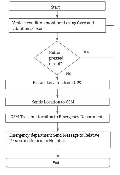 [2]EliNasr,EliKfuri,andDavidKhouryproposed a public safety agency model using the Internet of Things and GPS. This method uses public safety agencies, emergency services, the Internet of Things, sensors, and geographiccoordinates.Itisthepurposeofthisdocument to detect incidents and notify relevant public safety authorities. It detects impact using airbag deployment or collision sensors. The downside to this strategy is that it onlyinformsdriversofvehiclesequippedwithairbagsand impact sensors in the event of an accident. Accident detectionisunreliableduetohighfalsepositiverates.