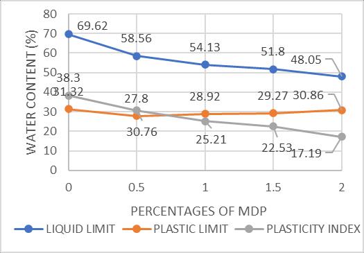 The results of Atterberg’s limit values on the marine clay withdifferentpercentagesofMarbleDustPowderareshown intheabovetableandfigure.Fromthefigurethefollowing conclusionsweremade.