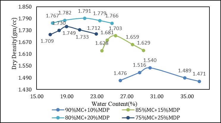 Itisnoticedfromthelaboratorytestresultsthatthe MDDofMarineClayhasbeenincreasedby28.77% ontheadditionof20%MDP