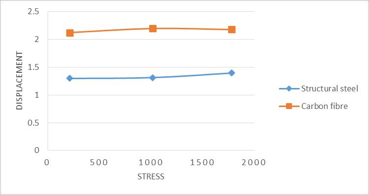 Maximumnodaldisplacementforbridgestructurewithrespecttoseismicloadconditionsfordifferentmaterialswere Carbonfibrestructuralsteelas63.104mm,EpoxyFibrestructuralsteelas69.992mmandStructuralsteelas70.091 mmrespectively.