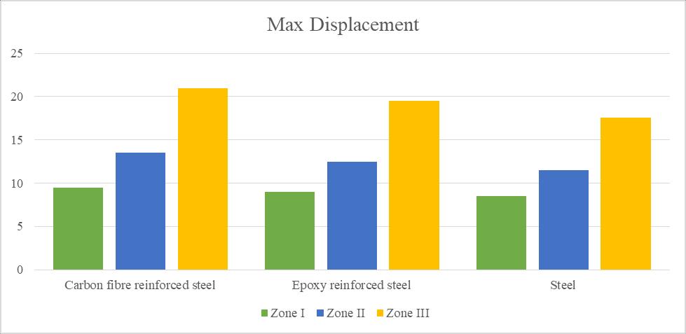 WhenthemagnitudeoftheseismicloadsappliedwereasperthatoftimeaccelerationgraphofzoneIII.All threedifferenttypesofthestructurebridgestructurenormalstructuralsteel,carbonfibresteelandepoxyfiber structuralsteelbridgesassubjectedtosameearthquakeloadasperzoneIIIaccordingtoIScodes.Itwasevident thatstructuralsteeltendstohavemaximumdisplacementoncomparisontoothertwotypesofstructure.