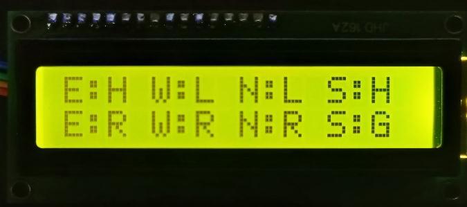 Thefigure12displaystheLCDdisplayoutputfrom themasternode.Here,thefirstrowdisplaysthenumberof vehicles,andthesecondrowdisplaysthestatusofthetraffic signal. Here, the traffic signal position is indicated by the letters "E," "W," "N," and "S," which stand for East, West, North,andSouth,respectively.LowandHigh,respectively, aredenotedbytheletters"L"and"H".Rstandsforred,andG standsforgreen.