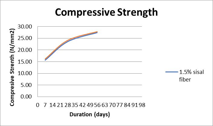 From table-2, we can say that the sisal fiber shows no improvement in compression strength when compares to normalconcrete.