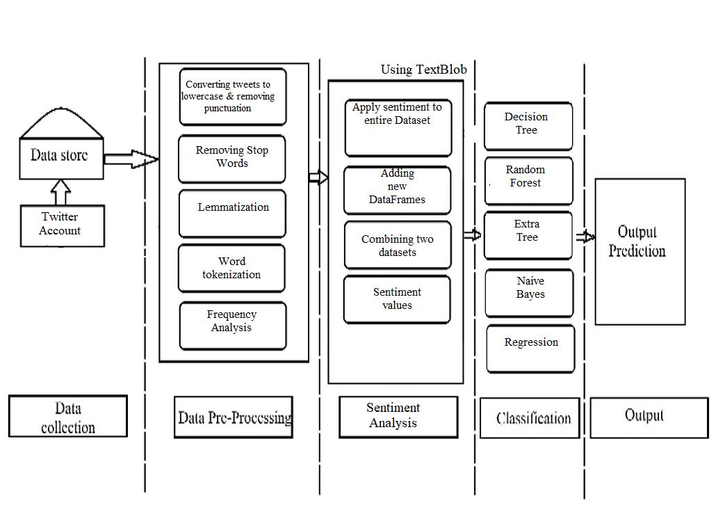Feature extraction is the process of selecting data and combiningthemintofeaturestoreducetheamountofdata thatmustbeaccuratelyprocessedandcarefullydescribethe original data set. The amount of redundant data for this analysis is also reduced. Therefore, feature extraction is performed by removing unnecessary data.Then clean the tweets by converting them to lowercase, removing punctuationandnumericvalues,andremovingstopwords. Stopwordsareimportantinmanyapplicationsbecausethey allow you to focus on the important words by removing commonly used words in a given language. Removing stopwordsisdoneinPythonusingNLTK.Alistofstopwords can be loaded, and the system is used to extract roots by removingsuffixesorprefixesassociatedwithwords.Inthis study, a Snowball morpheme analyzer, which is different from the Porter morpheme analyzer,isused in thatit can perform morpheme analysis on multiple languages. Tfidfvectorizer is used to tokenize the given document. FrequencyAnalysisisalsocarriedout.