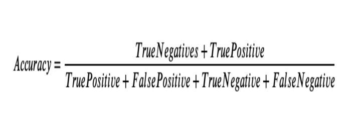 Forbinaryclassification,accuracycanalsobecalculatedin termsofpositivesandnegativesasfollows: