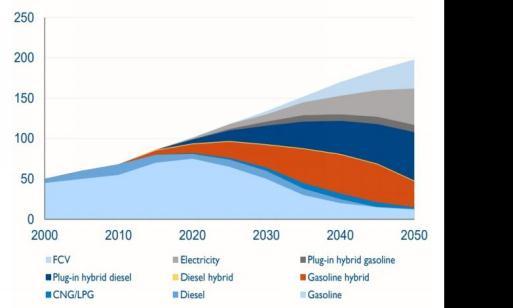 Source: International Energy Agency 2012 (IEA) According to a comparable scenario, the international energy agency (IEA) forecasts a 35 million unit annual salesFCVmarketshareofroughly17%by2050.[4]