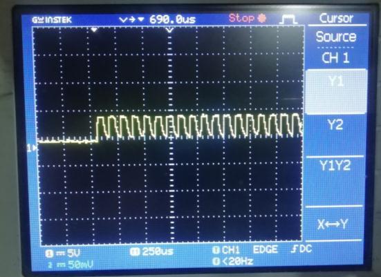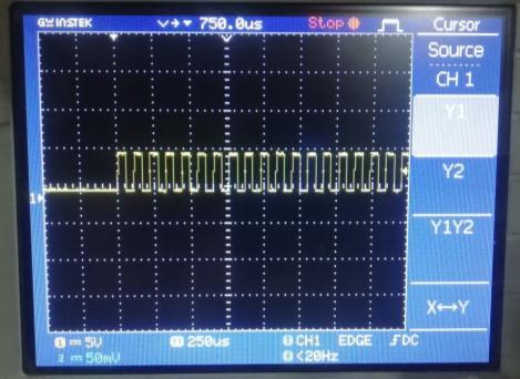 Infigure7wecanseethepulsesfromTXpinoftransmitter board controller. Amplitude is 5V that is microcontroller outputherepulsesareverycleananddistortionfree