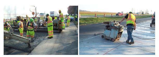 Concretejointsawing–Jointsweresawedinatimelymannerandnoearlyageproblemswereobserved.