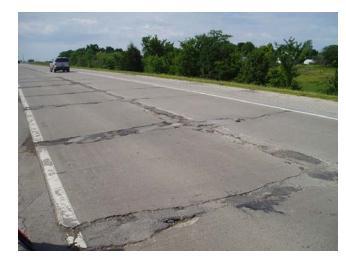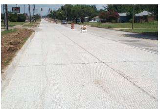 InMissouri in 2008,a geotextilecloth wasusedasan interlayerina thin,revolutionaryunbondedconcrete overlay.The 3.13-mile(5-kilometer)longprojectissituatedbetweenRoutes150and58alongastretchofRouteDinJacksonCounty. Thecurrentjointedconcretepavement,whichis30feet(9.1metres)apartand8inches(200mm)thick,wasbuiltin1986. Attransversejoints,one-inch(25mm)dowelbarswereemployed.TheMissouriDOT(MoDOT)anticipatedthatupto25% ofthepavementareawouldneedfull-depthrepairpriortoatypicalACoverlayasof2008sincethepavementsectionwas showingsevereD-crackingalongbothtransverseandlongitudinal joints.Figure6 depicts thestate ofthepavementasit standsrightnow.