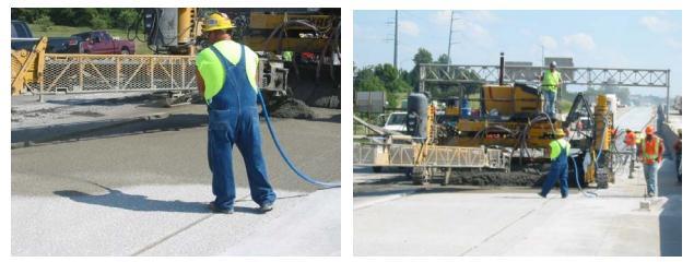 Concretecuring–Acuringcompoundwasusedandappliedatahigherratethattypicallyusedfornewconcrete pavementconstruction.