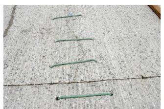 Fabricfastening–aHiltigaspoweredfasteningsystemwasusedtofastenthefabricontotheunderlyingconcrete pavement.