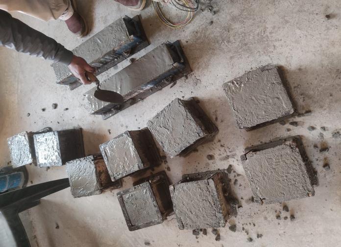 The compressive strength is finding using 2000kN compression testing machine in accordance with IS: 5161959. The compressive strength test is conducted on 150 mm size of cube at 3, 7 and 28 days adopting wet curing process.Threecubespecimensweretestedforeachcuring periodfor 7and28dayscuringperiod.Atotalof36cube specimens were tested for compressive strength for each mixinthelabofCITRanchi.