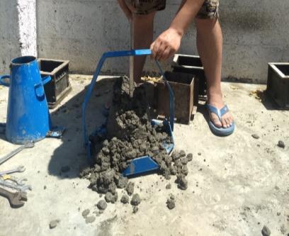 • Fill the mould with the prepared concrete mix in fourapproximateequallayers.