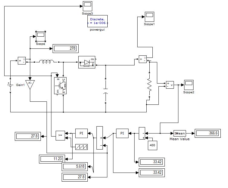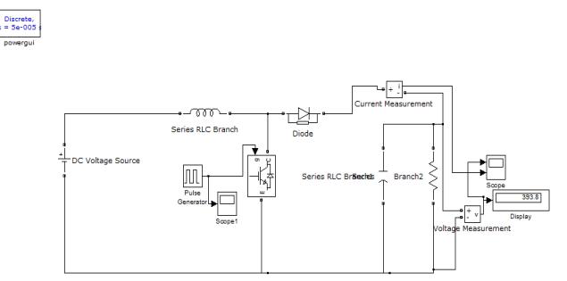 Using the MATLAB simulation program get the result of Dc-Dc close loop boost converter for 24V-400V DC Voltage. So design section value of inductor L=2.60Mh,Capacitor value C= 468uF and Resistor value R=400 ohm .show the waveform across the load voltage and inductance across the flow of current and gate pulse, and show observation various duty cycle and across the loadvoltage.