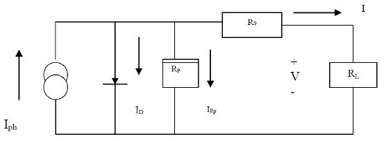 A simplified equivalent circuit of a solar cell consists of a currentsourceinparallel witha diodevariable resistor is connected to the solar cell generator as a load. Relationship between the current and voltage may be determinedfromthediodecharacteristicsequation: