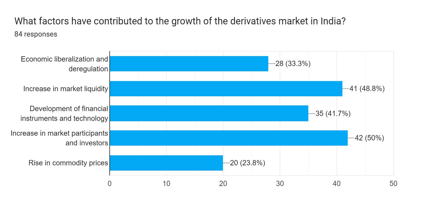 Chart 8 showsthatthefactorslikeIncreaseinmarketliquidityandincreaseinmarketparticipantsandinvestorshave contributedmajorityofthepartinthegrowthofderivativesmarketinIndia.Theyare48.8%and50%respectively.