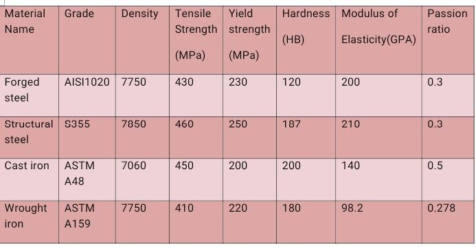 Structural steel material is the most feasible material as compare to the other [ wrought iron, Structural steel & Greycastiron]becauseofitslowestMax.