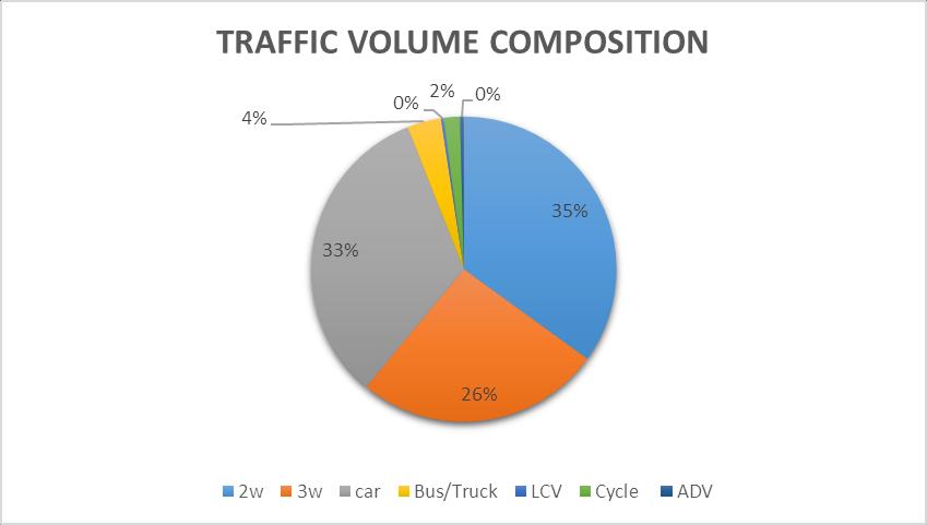 A survey had to be done on weekdays. Classified volume count was carried out at each of the intersections during Peak hours (Morning & Evening) and Off-Peak hours (Afternoon).Themethodadoptedforthesurveywasmanual counting of traffic for 6 intervals of 2 hours. each intersectioninmorningpeak:09:00 AM-11:00AMand in eveningpeak:06:30PM-08:30PMandoff-peak:02:00PM4:00 PM. The Volume in units of numbers was then later converted into one common unit PCU. Traffic counts a Mondaymorningrushhour,andaFridayeveningrushhour may indicate high volumes and are not included in the analysis; therefore, counts are conducted on a Tuesday, Wednesday,orThursday.ThesePCUvalueswereusedfor analysis.[4]