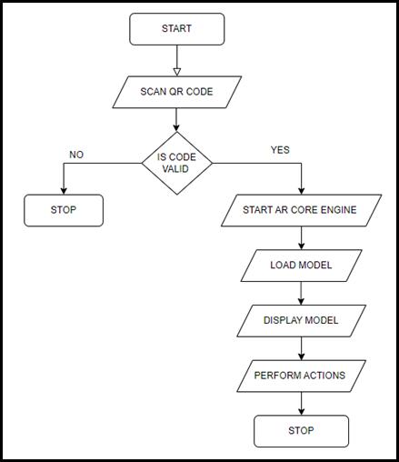TheARbasedEngineeringGraphicsSystemconsistsofFive Modules viz; Track and register module, gesture identificationmodule,actiondirections/instructionmodule 3Dmodeldatabaseandrendering/displayengine.Foreasier understandingofthismodulesfollowingflowchartcanbe usedwhichisalsothealgorithmofourapplication.