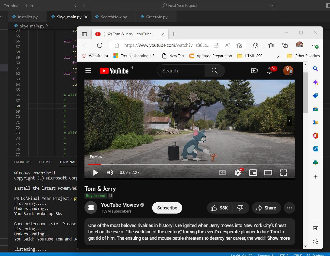 Focusingonwhatismostimportant,whetheritispersonalorprofessional,iscrucial.However,individualsoftenspendtoo muchtimeon mundanetasksthatcanbeautomatedwithpersonal assistants. Whenpeople are not familiar witha work environment,theymayhavetroublelocatingnecessaryapplicationssuchasbrowsers,IDEs,orothersoftware.Thiscanresult in hours wasted searching for applications and ultimately wasted time. To mitigate this issue, a voice-enabled personal assistantcanbeemployedtoautomatethisprocess.Bysimplyissuingavoicecommand,theassistantwilltakecareoftherest. Artificialintelligence-basedvoiceassistantshavenumerousapplications,includingITHelpdesk,homeautomation,HR-related tasks,andvoice-basedsearch.Voice-basedsearchisexpectedtobethefutureofnext-generationtechnology,withusersrelying heavilyonvoiceassistantsforalltheirneeds.Theseassistantswillalsobeparticularlyusefulforvisuallyimpairedindividuals. Worldwide,15%ofthepopulationhassomeformofdisability,with2-4%experiencingsignificantdifficultieswiththeirdaily functioning.Usingawebsitecanbechallengingforpeoplewithdisabilities,soweaimedtodevelopauniquewayforpeople withdifferentneedstoaccesstheinternet.Tocreateourproject,weusedVisualStudioCode,aswellasmodulesandlibraries suchaspyttsx3,SpeechRecognition,Datetime,Wikipedia,Smtplib,andmore.