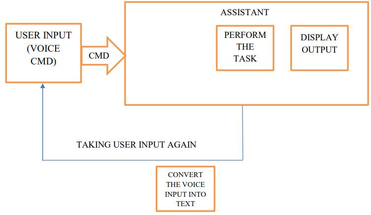 TherearethreemodulesinthisAssistant.Thefirststepisfortheassistanttotakeuservoiceinput.Second,analysetheuser inputandtranslateittotheappropriateintentandfunction.Thethirdistheassistantprovidingtheuserwiththeoutcomeall along through speech. The assistant will first begin receiving human input. When the assistant receives the input, it will transformtheanaloguevoiceinputtodigitaltext.Iftheassistantisunabletoturnthevoiceintotext,itwillprompttheuserfor inputoncemore.Afterconverted,itwillbeginprocessingtheinputandmappingittoacertainfunction.Theoutputwillthenbe providedtotheuserbyvoicecommand.Usersrequestorinquirygetschopsintosegregatecommandswhichmakesiteasyto recognizebyourdesktopvoiceassistant.