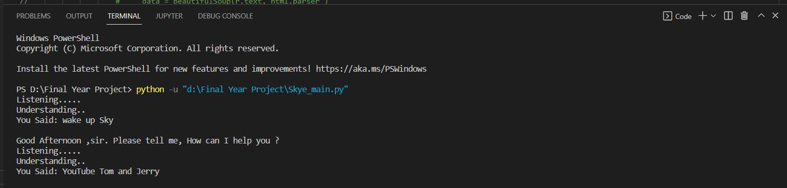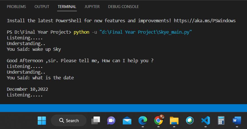 Forexample,Whenapersonsays,"SKYE,openWhatsapporwikipedia,"thevoiceassistantwilllistentothecommandandtake theappropriateaction,suchasopeningtherelevantwebsite.Aftertheuserhasfinishedspeaking,thevoiceassistantwillpause forafewsecondstoensureithascapturedtheentirerequest,andthenitwillsearchitsdatabasefortheinquirytoprovidethe relevantresult.